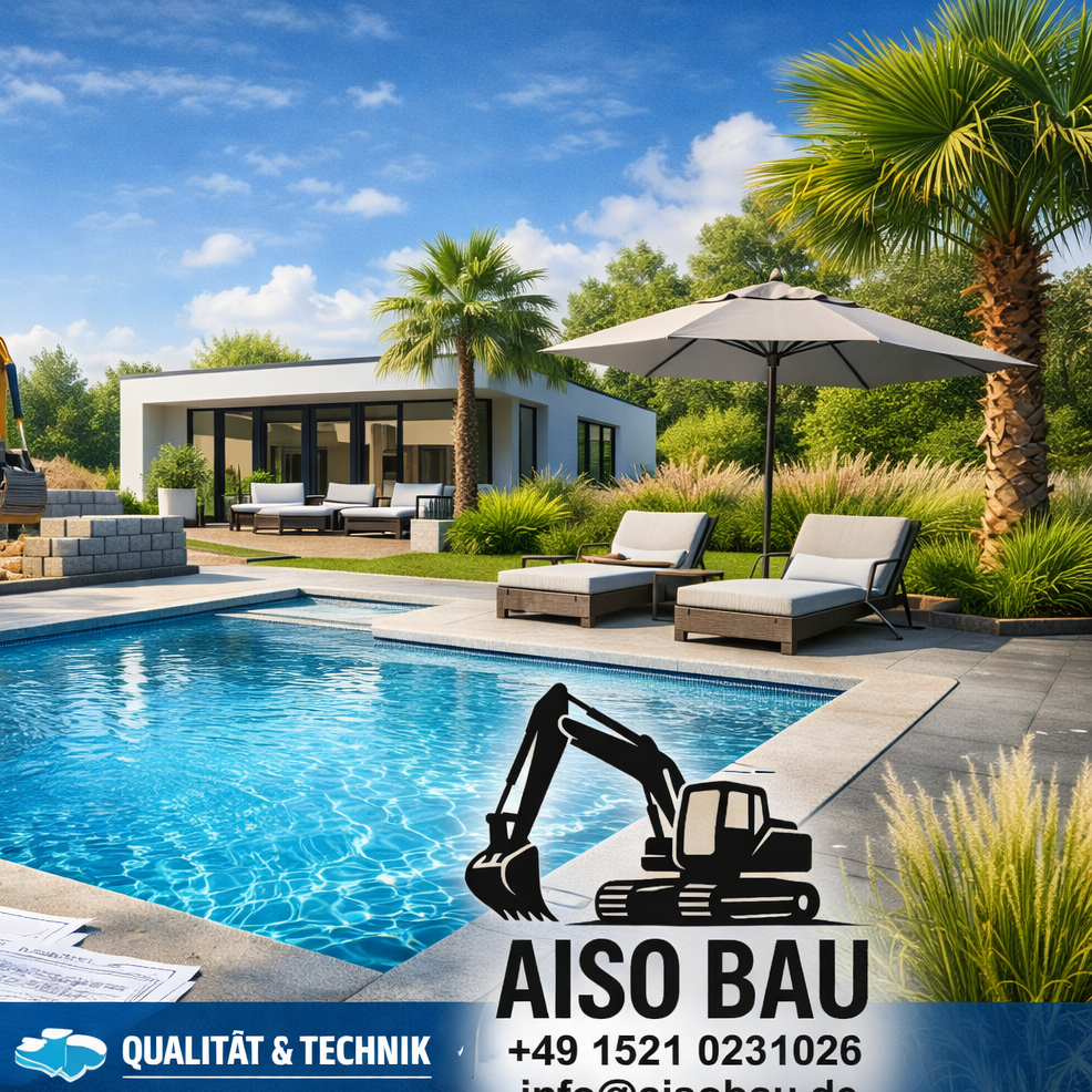 Wir bieten umfassende Dienstleistungen im Bereich Poolbau, Landschaftsgestaltung und Pflasterarbeiten für Ihr Zuhause an.